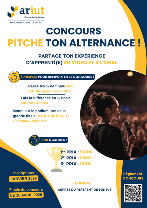 Cette année les IUT de l’ARIUT Occitanie-Pyrénées lancent leur 1re édition du concours « Pitche ton alternance ! »